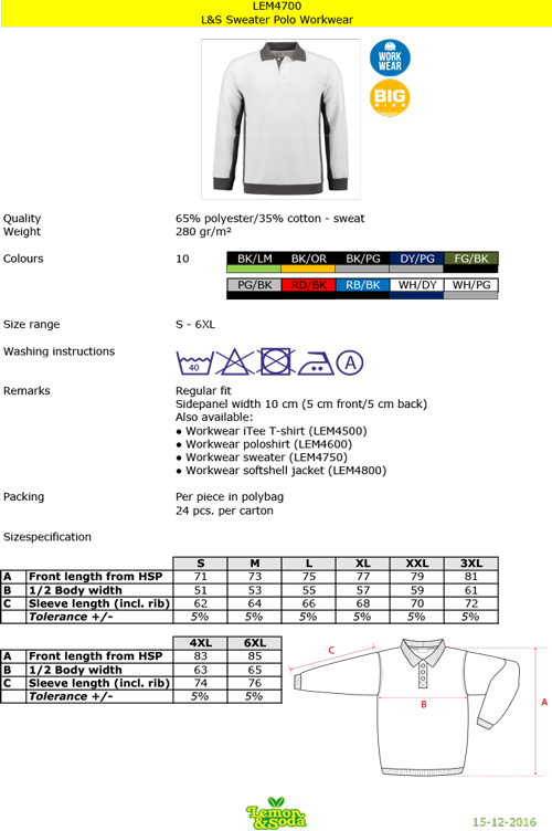 Lemon & Soda workwear polosweater met elastaan in de manchetten en kraag. Door middel van een bedrukking of borduring te personaliseren en onderdeel van de Contrastlijn van Lemon & Soda.